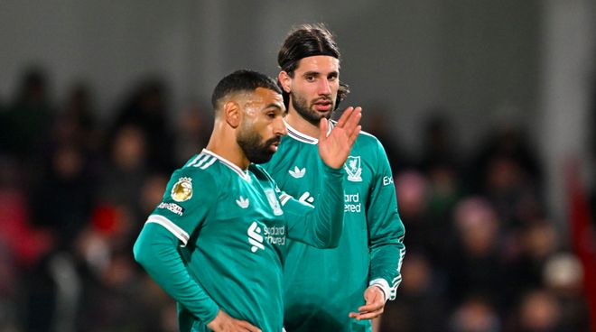下半场开始后,两支球队的攻防转换节奏依旧相当快,在布伦特福德的强硬对抗下,利物浦球员踢得有些吃力。