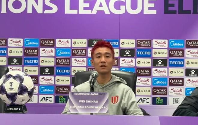 亚冠精英联赛客场对阵神户胜利船赛前,成都球员韦世豪出席了新闻发布会。